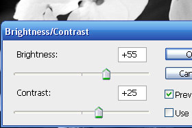 Odpre se novo okno. Malo se poigrajte z nastavivami Brightness in Contrast, da dobite bolj svetlo in kontrastno fotografijo. Jaz sem nastavil Brightness +55 in Contrast +25. Kliknite na gumb OK. |