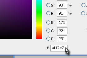 V polje # vpišite af17e7 in kliknite na gumb OK. Vpisana številka predstavlja vijolično barvo, seveda si lahko izberete svojo poljubno. |