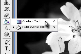 Držite z miško na orodju Paint Bucket Tool (bližnjica je tipka G), da se vam prikažejo ostala orodja. |