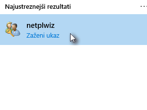 ![]() Med najdenimi rezultati iskanja zaženite netplwiz.