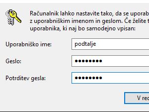 ![]() Odprlo se bo novo pogovorno okno, kjer vpišete vaše uporabniško ime in geslo, ki se bo uporabilo za avtomatsko prijavo. |