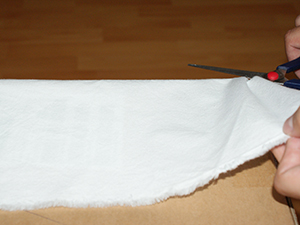 ![]() Sledi lepljenje belega blaga oz. papirja za zavijanje, po vseh stranicah, ki smo jih izrezali. |