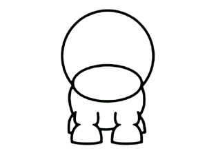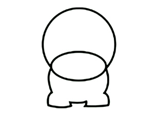![]() Nato dorišite spodaj še telo, kot je razvidno tudi na sliki. Del, kjer se kroga prepletata, bo služil za nos, tako da ga ne bomo brisali. |