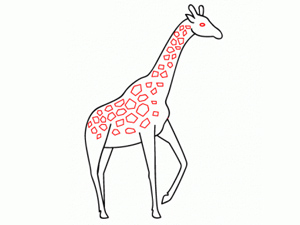 ![]() Ter vzorce po celem telesu ter oči, s katerim boste dokončali risanje žirafe. |