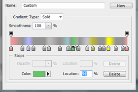 V stolpcu (levo) izberite Gradient Overlay. V Gradient Overlay pod Style izberite "Angle". Pod Gradient izberite "Spectrum". Ne zaprite še "Blending Options..."! |