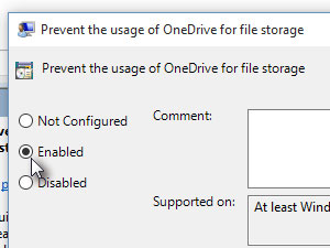 ![]() Označite Enabled ter potrdite nastavitev. Po novem zagonu računalnika bi se moral OneDrive skriti. |