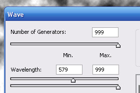 Odpre se novo okno. Prvo pri polju Type označite Sine in natodoločite Number of Generators 999. Wavelenght določite Min. 579 in Max. 999 (glej sliko). Ne zaprite še okna... |