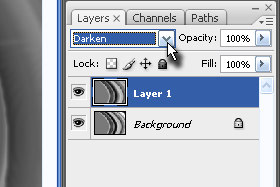 Določite dupliciranemu layerju senčenje na Darken (glej sliko).