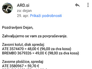 Z nakupom zavornih delov sem privarčeval več kot 70 evrov. Če bi kupoval še kaj večjega, bi prihranek bil še večji. Zelo priporočam. Potem pa avto dele lahko pronesete k serviserju, ki vam jih zamenja.