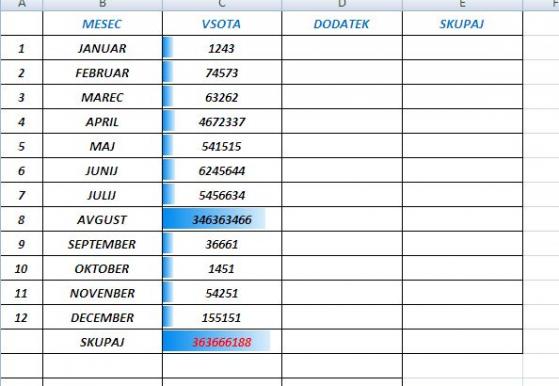 Excel 2007 nam ponuija zelo enostaven grafičen prikaz vrednosti, ki jih imamo zapisane v celicah.