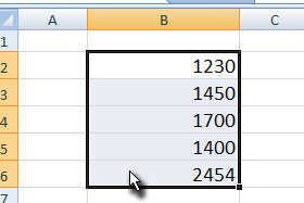 Z miško označite vse celice.