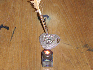![]() Na primer, na mizi boste našli pero, ki je pred davnimi časi nekaj napisalo. |