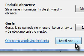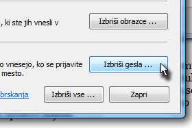 Internet Explorer si lahko shrani tudi gesla na določenih spletnih straneh in vam tako omogoča hitrejše dosopanje do njih. Vendar pa nekje računalnik uporablja več ljudi in je zato primerno to brisati. |