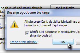Brisanje zgodovine brskanja vas opozori, če ste prepričani.