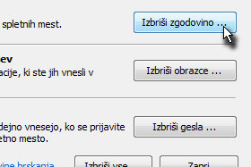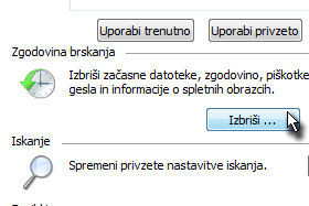 V polju Zgodovina brskanja kliknite na gumb Izbriši ... |