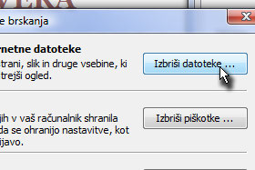 Kliknite na gumb Izbriši datoteke ... S tem ukazom boste v začasni mapi Internet Explorerja pobrisali shranjene slike in ostale datoteke, ki omogočajo hitrejše nalaganje spletnih strani. Te datoteke so primerne za uporabnike s počasno spletno povezavo. |