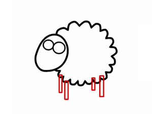 ![]() Večjemu krogu dodajte sedaj "volno" z valovitimi linijimami. Glavi pa dorišite oči. |
