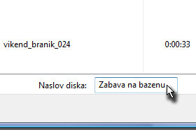V istem oknu v polje Naslov diska vpišite poljubno ime za naslov DVD-ja.