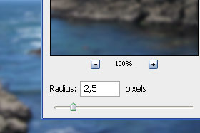 V polje radius vpišite 2.5 pixels in kliknite na gumb OK.