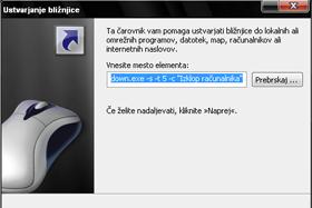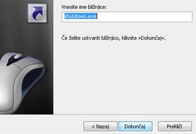 Sedaj kliknemo po gumbu Naprej(Next). Za ime bližnjice vnesite npr. Izklopi računalnik.exe