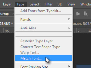 ![]() Kliknite zgoraj na Type in izberite Match Font... Ta možnost je na voljo v različici CC 2015.5 in naprej. |