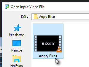 ![]() V oknu z raziskovalcem označite video posnetek, ki ga želite pretvoriti ter potrdite. |