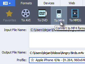 ![]() Nato v programu označite To MP4. Lahko tudi druge formate, jaz vam bom predstavil format, ki je združljiv na vseh napravah in za njega ne potrebujete kodekov. |