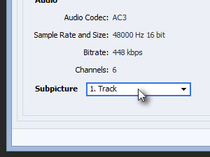 ![]() Če želite dodati še podnapise, Subpicture določite želen napis. Zadnja možnost je vedno podpis, ki se v enakem imenu kot video posnetek nahaj v isti mapi (film.avi, film.srt). Če imate možnost nastavljanja Audio, lahko izberete na primer določen jezik ali pa večkanalen zvok. |