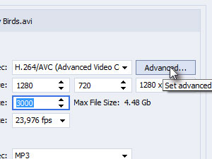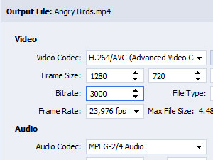 ![]() Nato pa pod Video nastavitve nastavite 1280 x 720 slikovnih pik, Bitrate 3000 in Frate Rate 23,976 fps. Seveda lahko tudi po želji. |