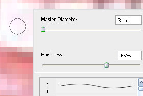 Kliknite z desnim miškinim gumbom na dokument in določite majhen Master Diameter (čopič) ter Hardnes na okoli 65%.