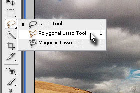 Držite z miško na orodju Lasso tool (bližnjica je tipka L) toliko časa, dokler se ne prikažejo ostala orodja. |