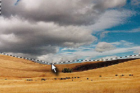 Sedaj pa s tem orodjem označite nebo z oblaki.