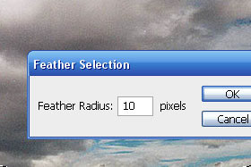 Odpre se novo okno. Feather Radius določite 10 pixels in kliknite na gumb OK. S tem smo določili gladino roba. če je vađa fotografija večje ločljivbosti, določite večje število. |