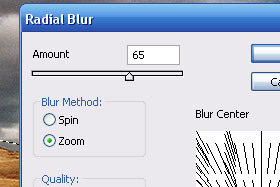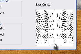 Odpre se novo okno. Amount določite 65 in Blur Method Zoom. Ne zaprite še okna... |