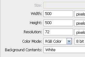 Ustvarite dokument v velikosti 500 x 500 pik.
