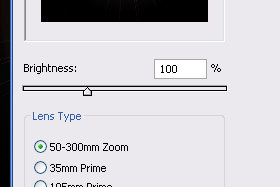 Brightness določite 100 % in Lens Type 50-300mm Zoom.