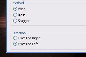 Odpre se novo okno. Method določite Wind in Direction From the Left. Kliknite na gumb OK. |