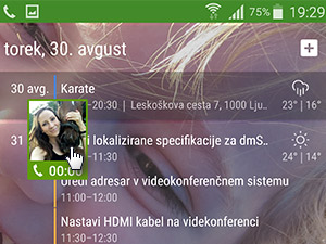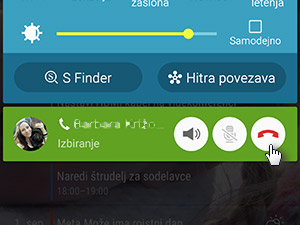 ![]() Naslednjič se vam ikona oziroma bližnjica ne bo pojavljala, klic pa boste lahko prekinili tako, da boste iz zgornjega roba zaslona s prstom povlekli navzdol. |