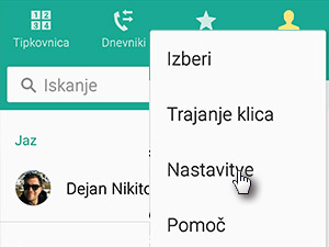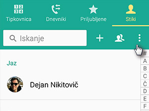 ![]() Odprite aplikacijo Stiki in v njej tapnite na triki pikice, ki predstavljajo več možnosti. |