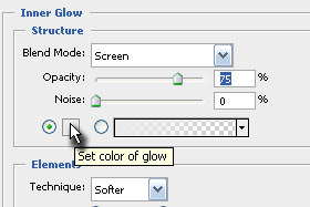 Kliknite na levi strani na Inner Glow.