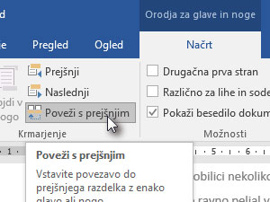 ![]() Zgoraj naj bo Orodja za glave in noge označeno. Potem pa kliknite na Poveži s prejšnjim. |