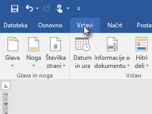 ![]() Potem pa kliknite na zavihek Vstavi. |