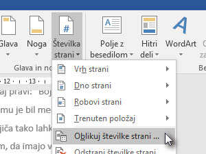 ![]() Potem pa kliknite na Številka strani, izberite Oblikuj številke strani. |