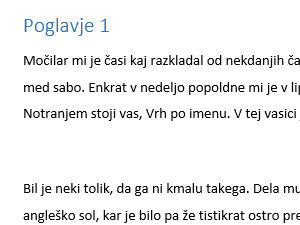 ![]() Na tretji strani se bo začelo šteti. Na prvi strani imate naslov, drugi kazalo, na tretji pa se začne vsebina. |