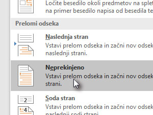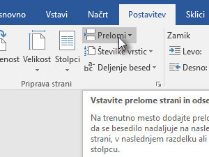 ![]() Kliknite na zavihek Postavitev in nato na Prelomi ... |