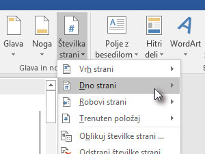 ![]() Nato kliknite na Številka strani, izberite Dno strani ... |