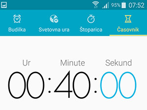 ![]() Nastavite želen čas, da se vam začne odštevati. Jaz sem nastavil za peko jabolčnega zavitka 40 minut. Tapnite na Začnite, da začne aplikacija odštevati. |