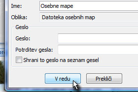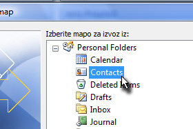 Določiti moramo še mapo, kjer bomo datoteko s stiki shranili.