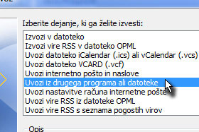 Kliknite zgoraj na Datoteka in izberite Uvoz in izvoz ... Potem pa izberite Uvozi iz drugega programa ali datoteke. |