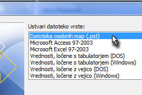V polju ustvari datoteko vrste označite Datoteka osebnih map (.pst) in kliknite na gumb Naprej.